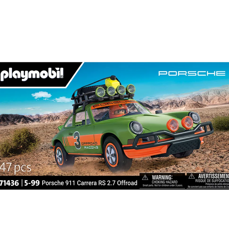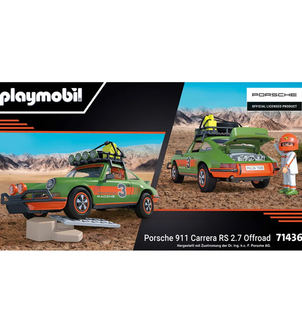 Sjovt Playmobil sæt med i alt 47 dele, der samles til en Porsche 911 Carrera RS 2.7 OffRoad i grøn og orange.