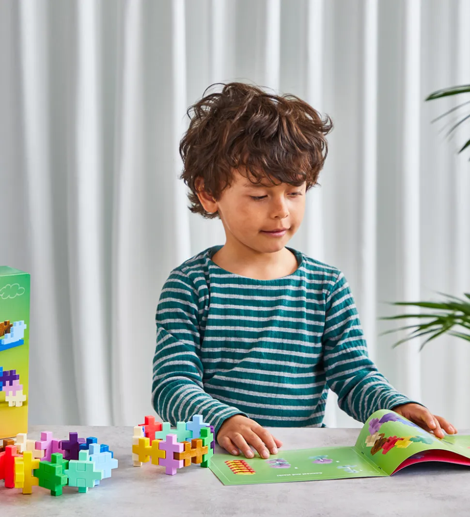 Plus-Plus BIG klodserne har form som plus-tegn, hvilket gør, at de kan sættes sammen på alle leder og kanter. BIG klodserne er i den store størrelse, som er god til de helt små.