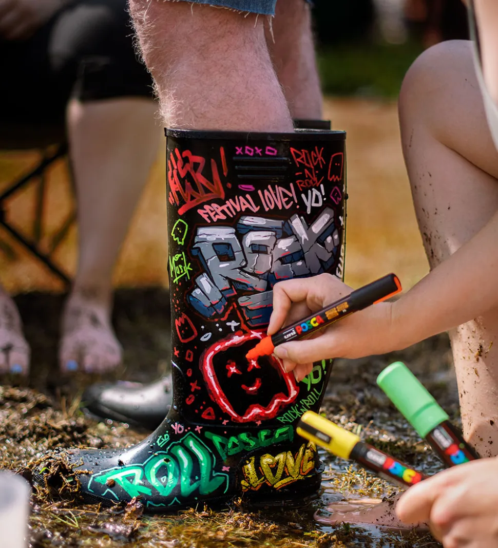 Posca tuschen rystes før brug, så den maler med en ensartet farve. Hvis spidsen bliver tør, kan den lægges i blød i vand, og så er den så god som ny igen.
