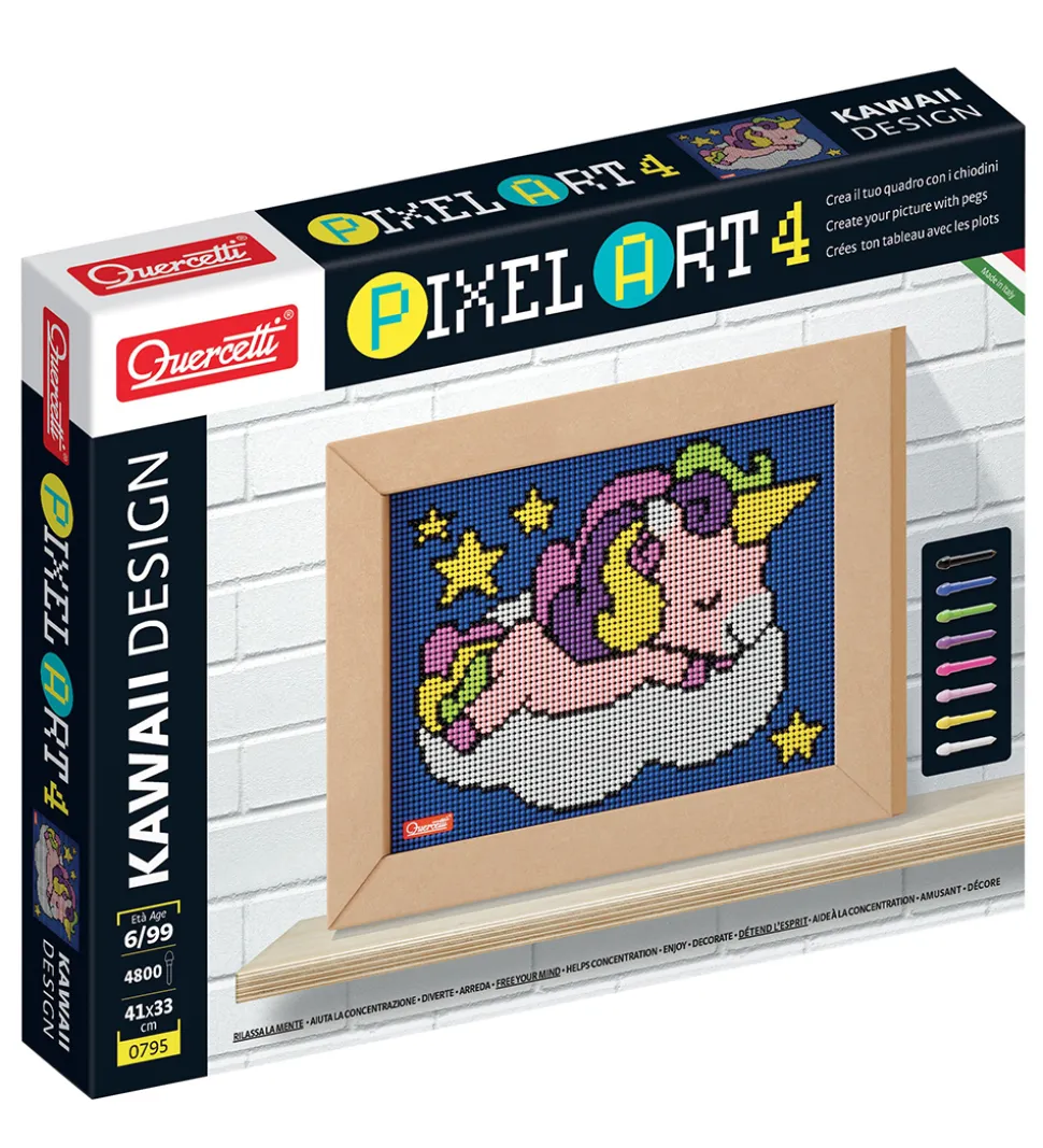 Sjov Quercetti pixel art med i alt 4800 dele, så der kan laves et sødt billed af en sovende enjørning. I æsken medfølger: