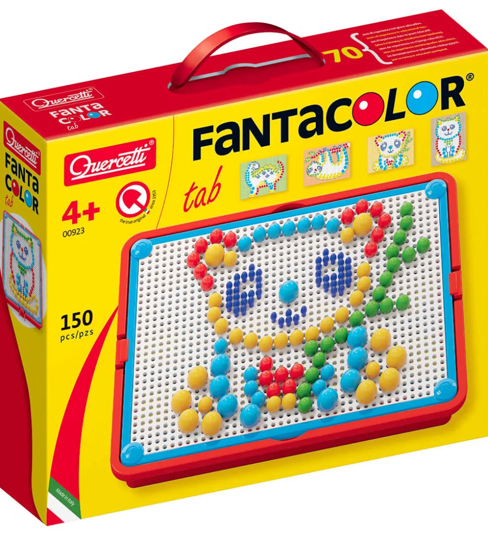 Stiftmosaikken er perfekt til børnehavebarnet, og stimulerer de finmotoriske færdigheder, hånd-øje-koordination og kreativ tænkning. Quercetti udvikler legetøj ud fra STEAM-læring, som indebærer videnskab, teknologi, ingeniørarbejde, kunst og matematik.