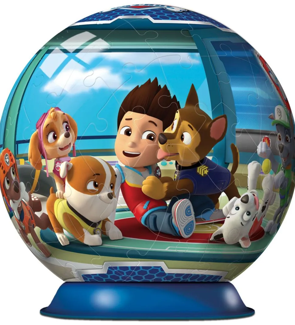 Skønt Ravensburger 3D puslespil der forstiller en cirkel med motiv af Ryder og hundene fra Paw Patrol.
