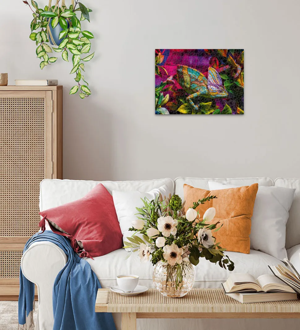 Fascinerende Ravensburger puslespil med motiv af en farverig kamæleon.