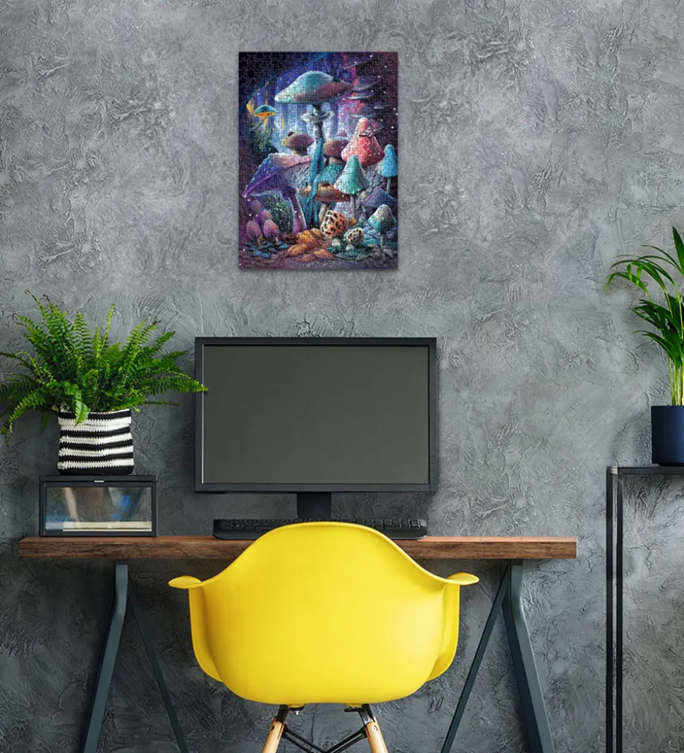 Fantastisk Ravensburger puslespil i levende farver med et unikt motiv af glødende svampe i skoven. Glæd dig over detaljerede illustrationer, der lyser i mørket. Ravensburger puslespillet består af 500 brikker.