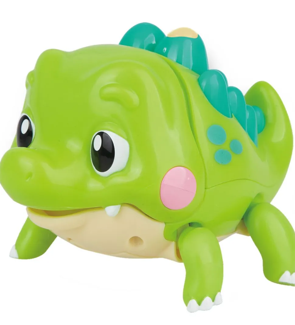 Sjovt Robo Alive badelegetøj formet som en grøn krokodille med petroleumsblå detaljer.