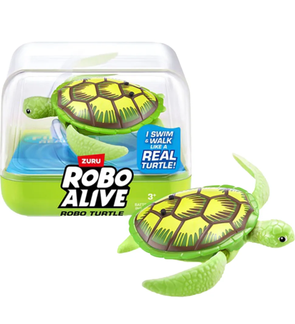 Robo Alive badelegetøjet er en interaktiv skildpadde, der svømmer, når den kommer i vandet, men den kan også bevæge sig på land. Badelegetøjet sørger for underholdning og leg i badet eller i poolen.