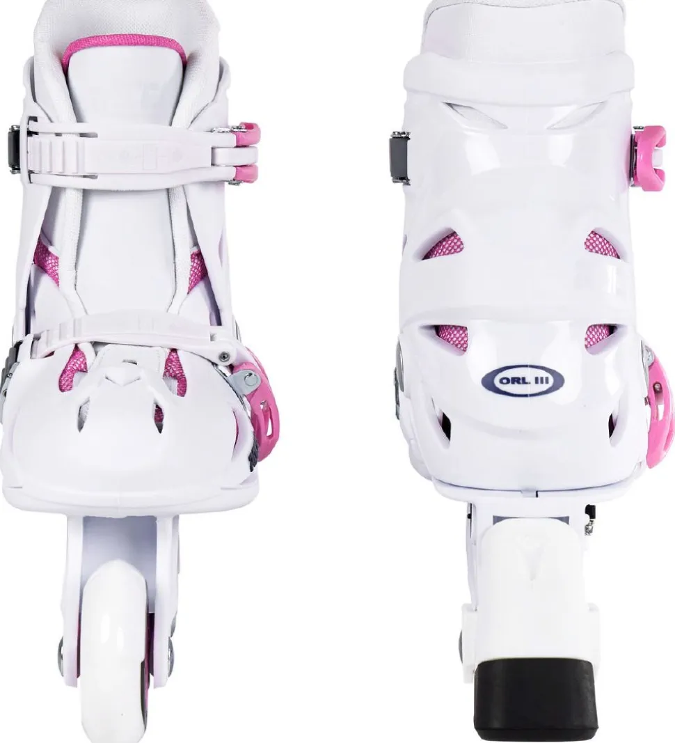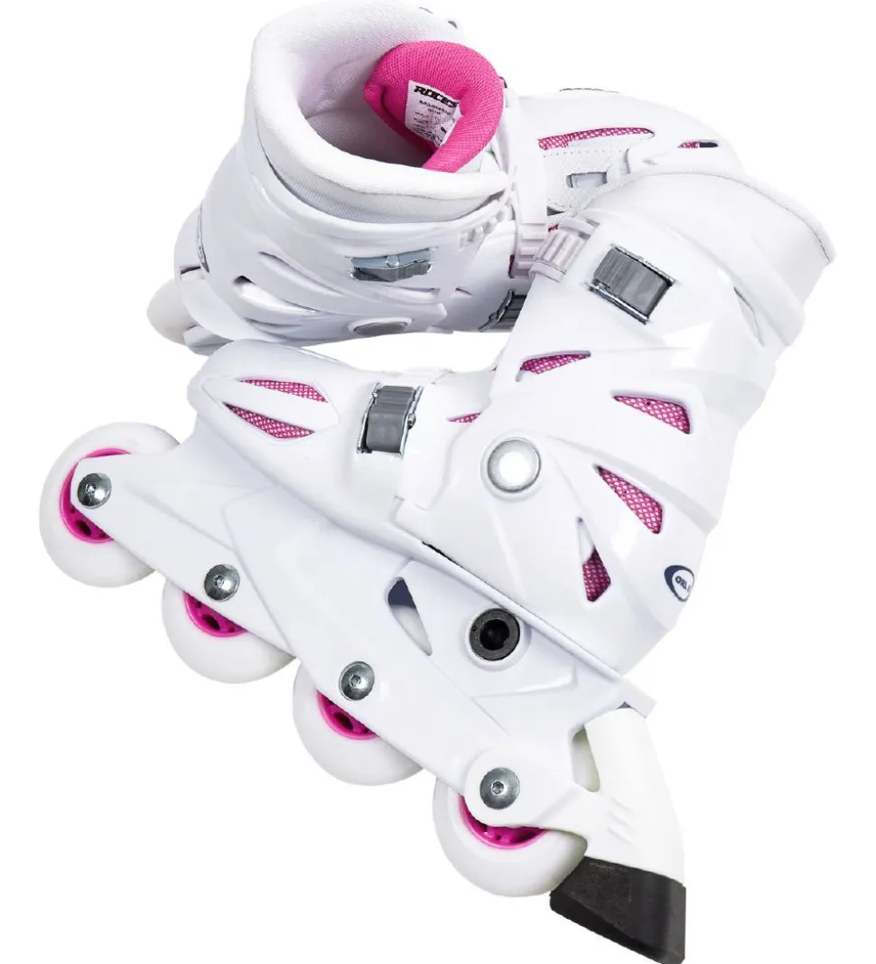 Rulleskøjterne er justerbare i størrelsen, hvilket vil sige at barnet kan vokse med rulleskøjterne. De indstilles nemt til fodstørrelsen ved at dreje på en metalspænde på ydersiden. Rulleskøjterne har et ABEC 3 kuglelejer, som sørger for at hjulene roterer gnidningsfrit. Bagpå højre rulleskøjte er der en stor bremseklods, så de er lette at styre. Hjulene er i hård gummi.