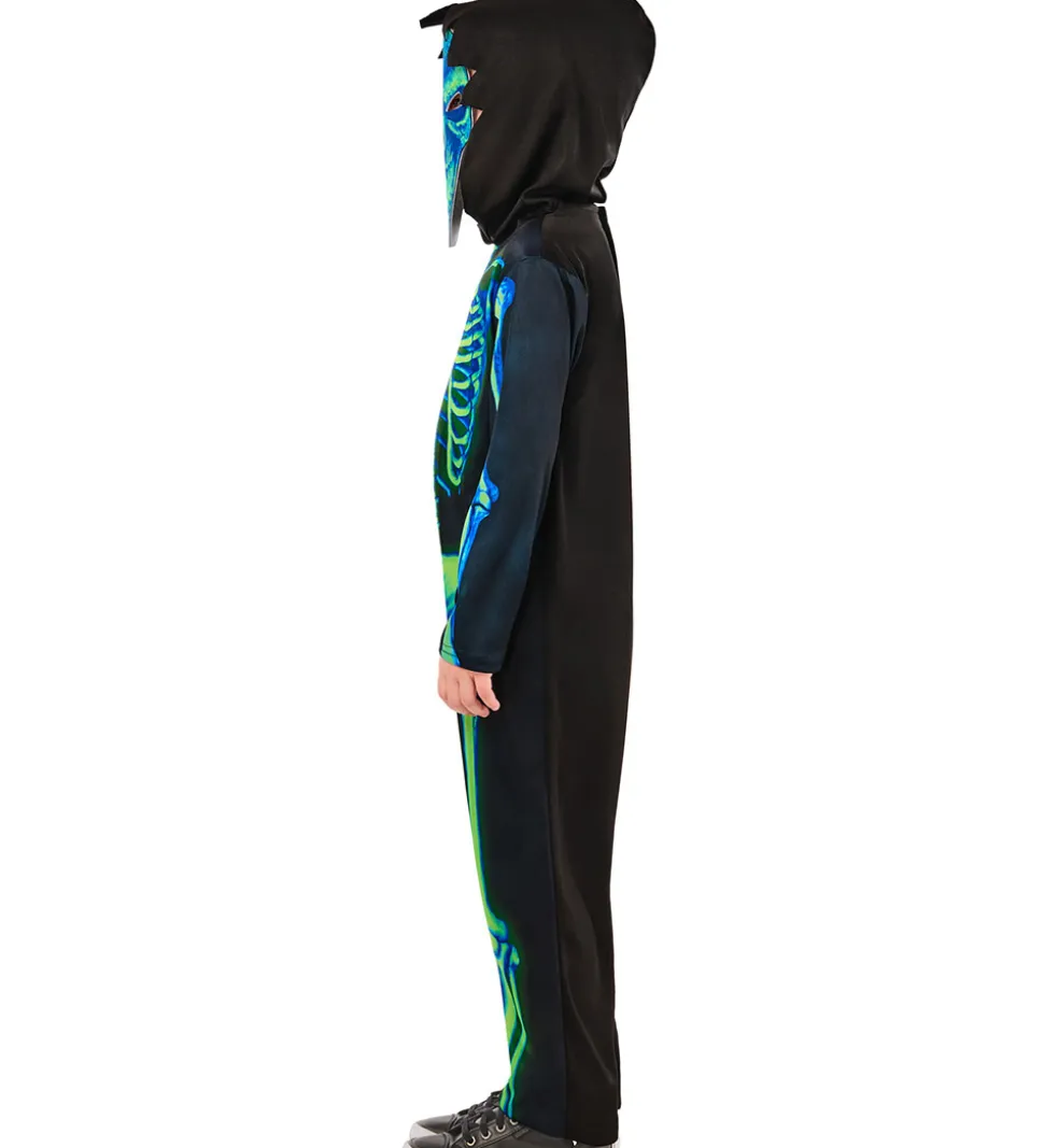 Sej Rubies udklædning med et kostume, så barnet kan klæde sig ud som et neongrønt, skræmmende skelet.