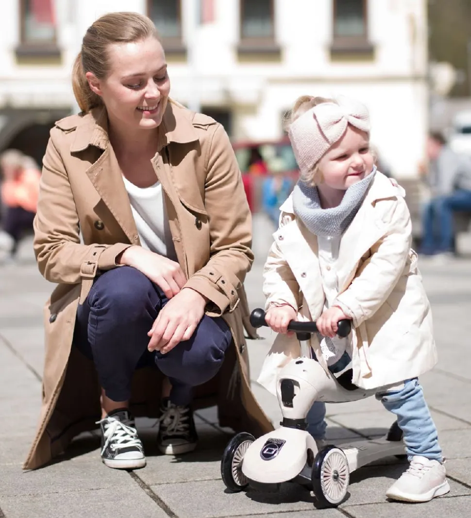 Scoot and Ride Highway Kick 1 er ideelt som barnets første køretøj, som både kan bruges som løbecykel og løbehjul. Highway Kick kan let omdannes fra løbecykel til løbehjul og omvendt, uden værktøj. Både løbecykelen og løbehjulet kan let indstilles i både sæde højden og styr højden. Highwat Kick har en bremser ved baghjulet, som barnet selv kan anvende og en bremser mellem de to forhjul, som forældrene kan anvende. Highway Kick er let for barnet og dreje, man kan med et klik sorge for at den ikke kan dreje og gør den dermed sikker for selv de små børn og køre på.