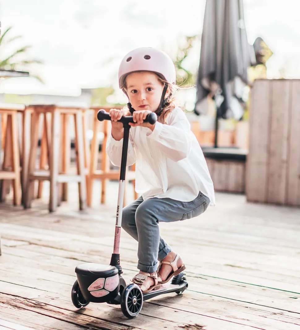 Scoot and Ride Highway Kick 2 er et smart løbehjul med to store hjul foran og et lille hjul bagpå med gode bremser. Løbehjulet har en bred plade til at stå på, med et skridsikkert materiale og er dermed meget stabilt. Fortil er der en praktisk opbevaringsboks, til f.eks. yndlingsbamsen eller lignende. Hele styret kan tags af, så det er let at opbevare. Hjulene er i hård gummi.