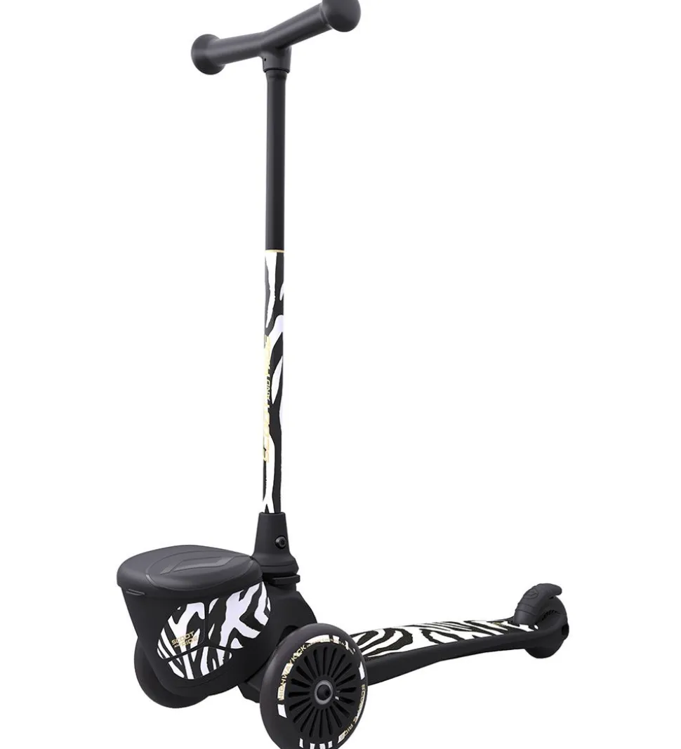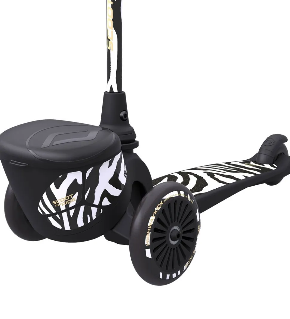 Flot Scoot and Ride Highway Kick 2 i sort, med hvide striber, så det ligner en zebra.