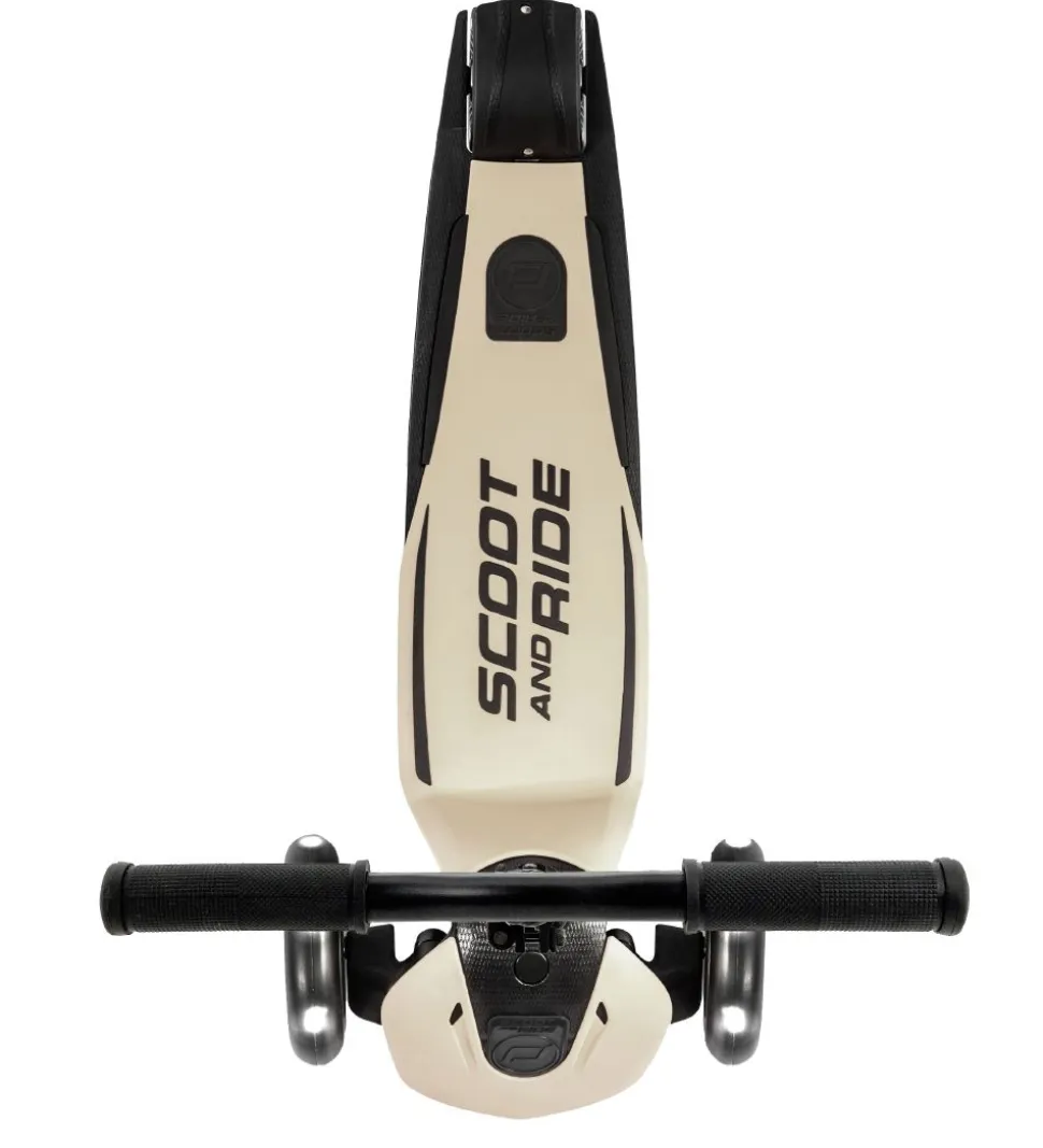 Scoot and Ride Highway Kick 5 løbehjulet har to store hjul foran og et lille hjul bagpå med en god bremse. Løbehjulet har en bred ståflade, som giver en god stabilitet. Styret er justerbart, så løbehjulet kan bruges i mange år, og det kan også fjernes helt, så løbehjulet nemmere kan transporteres.