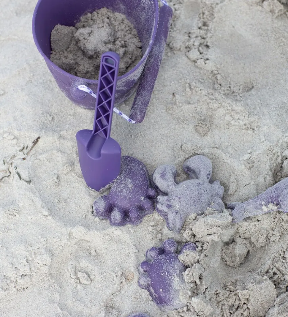 Scrunch spanden kan rumme 1,5 liter. Den er lavet af fleksibelt, blødt og foldbart silikone, så den er let at have med i strandtasken eller kufferten. Spanden har et praktisk, skridsikkert håndtag der passer perfekt ind i barnets hånd.