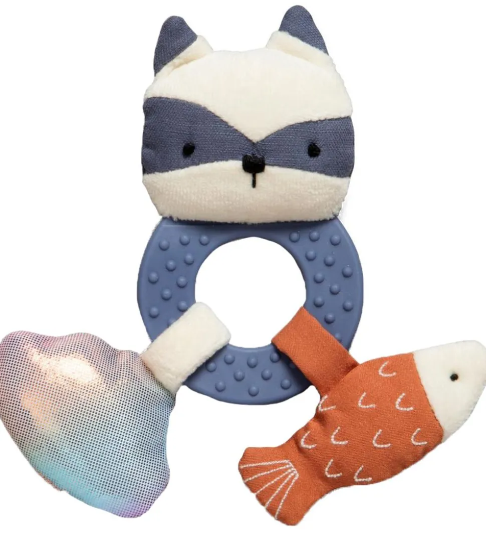 God Sebra aktivitetsrangle med form som en vaskebjørn. På ringen sidder to dele, en fisk og en sky med en changerende effekt.