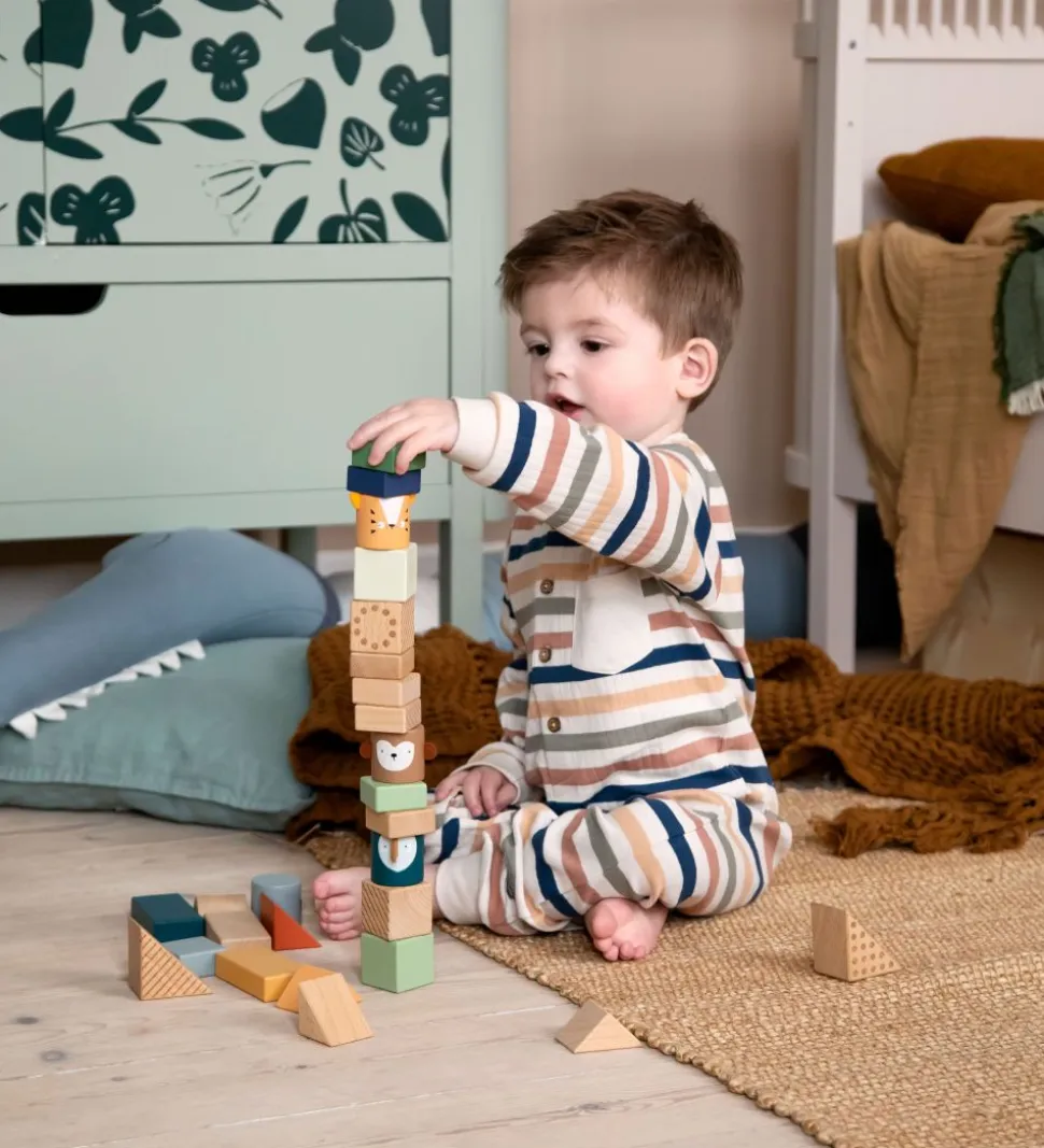 Byggeklodserne er med til at udvikle barnets hånd-øje-koordination, følesans, synsans, grov- og finmotorik og fantasi.