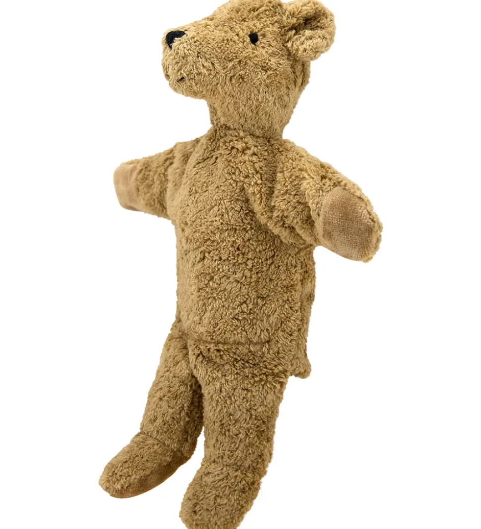 Nuttet Senger Naturwelt hånddukke udformet som et plysset bjørn.