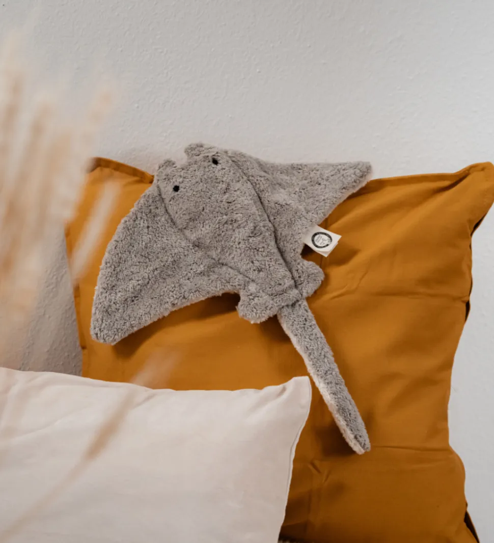 Lækker Senger Naturwelt varmepude formet som en grå og hvid rokke.