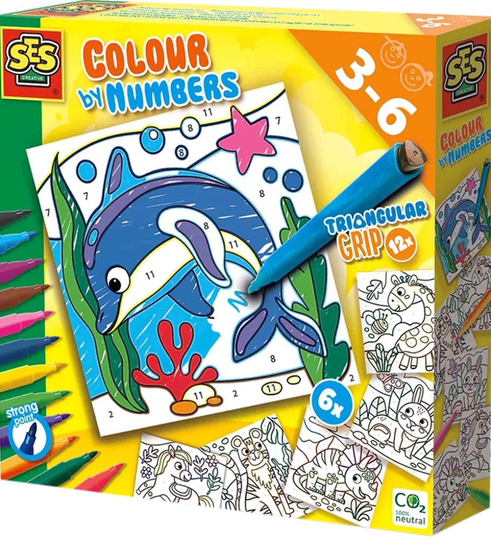 SES Creative farvesættet er perfekt til den lille, da man både kan male efter nummer, men man kan også få hjælp af de farvede streger så man ved hvilken farve der skal bruges.