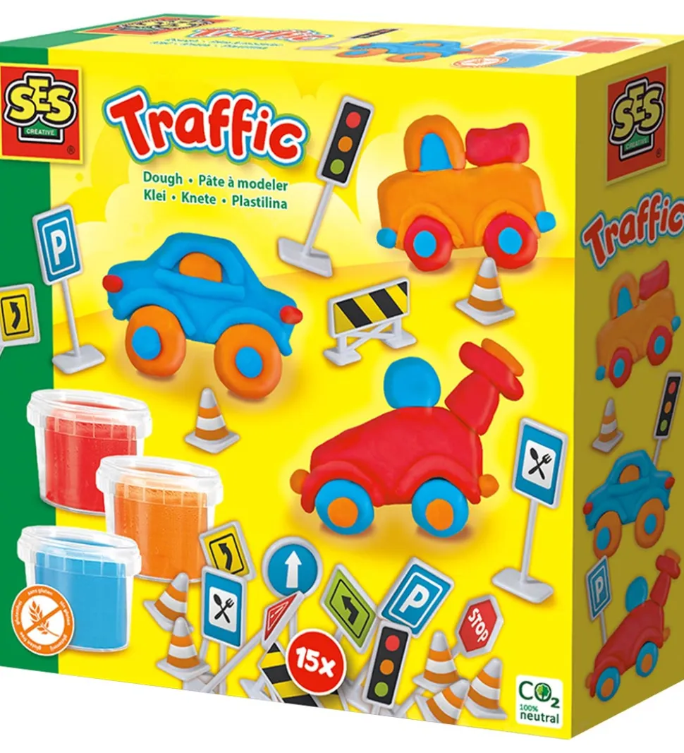 Fint SES Creative modellervoks med tre forskellige farver og vejskilte.