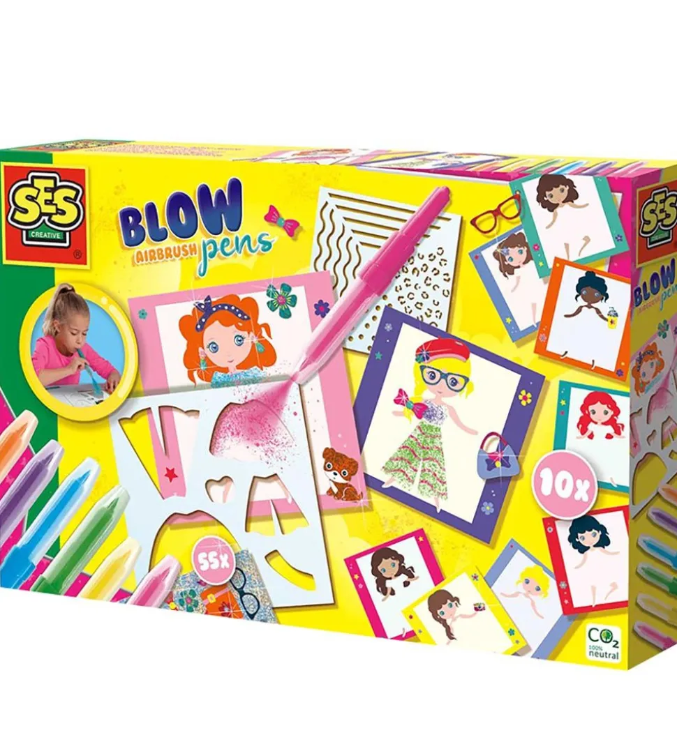 Sjovt SES Creative aktivitetssæt med skabeloner og pustetuscher.
