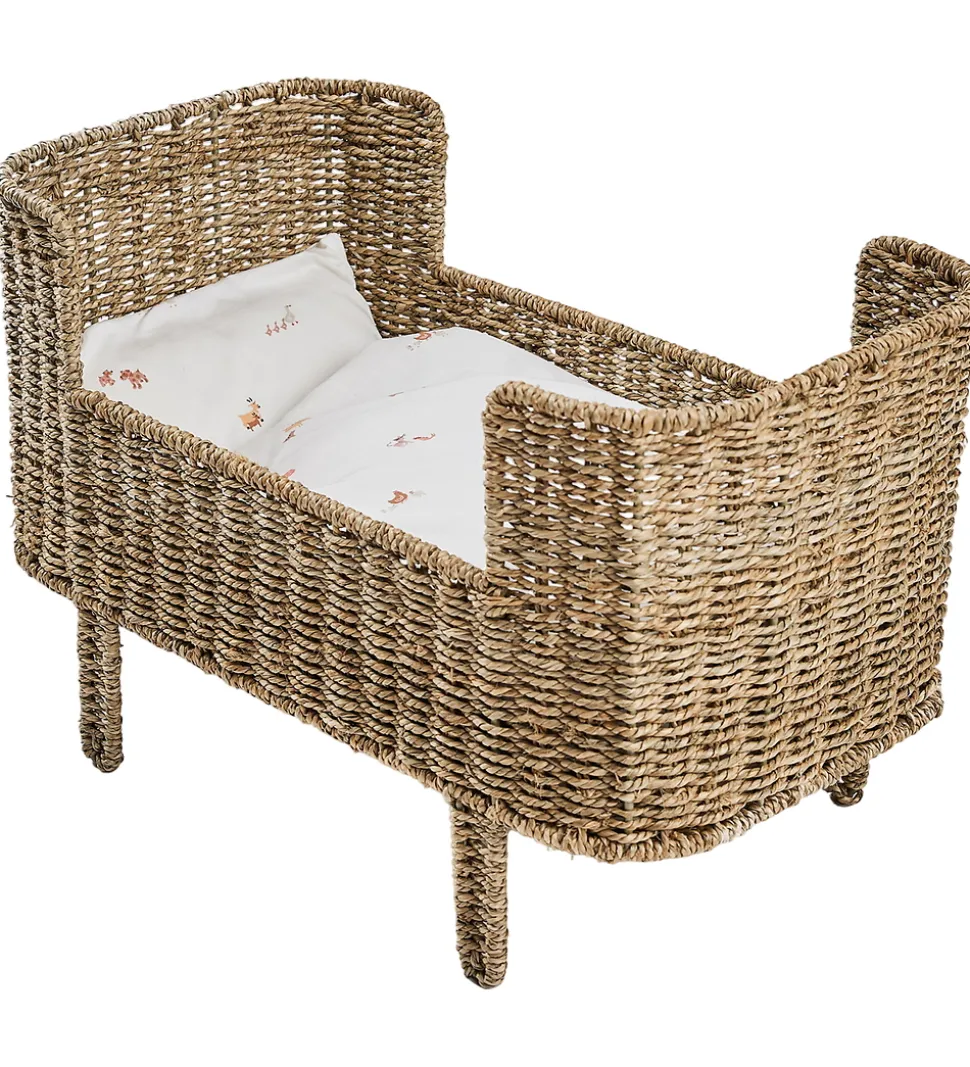 Flot Smallstuff dukkeseng i flettet, naturfarvet søgræs. Dukkesengen har en blød madras i bunden, så dukken kan ligge trygt og godt. Dukkesengen indbyder til fantasifulde lege og rollelege. Den er let at rengøre med en fugtig klud.