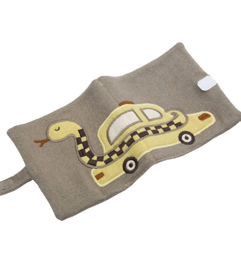 Sødt Smallstuff fotoalbum i en strikket kvalitet i brun med en taxi på fronten.