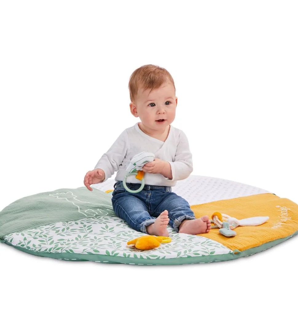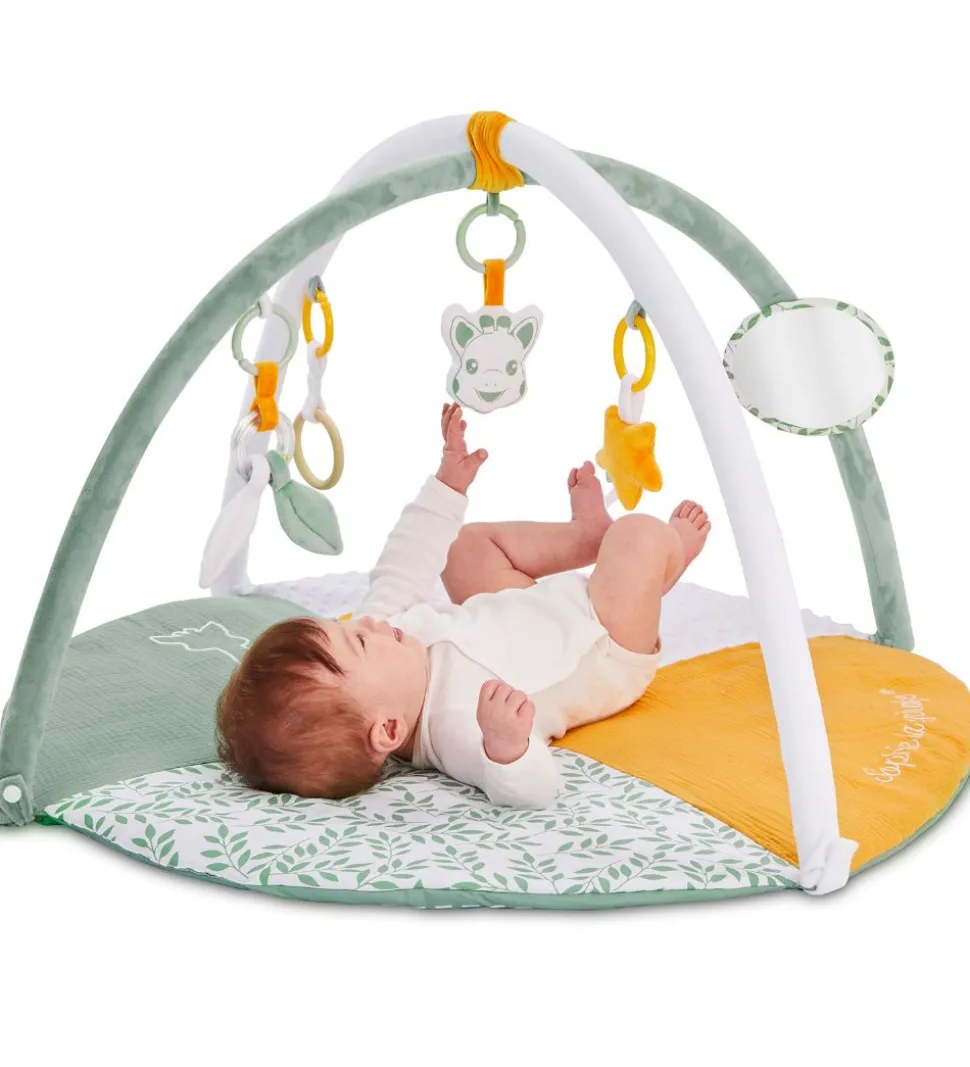Godt Sophie la Girafe aktivitetstæppe i grøn, hvid og gul.