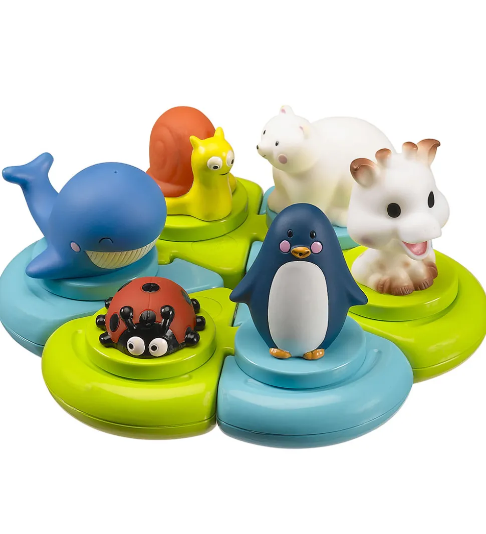 Charmerende Sophie la Girafe badelegetøj med farverige og sjove dyremotiver. Designet i glade nuancer med figurer der sprøjter vand, giver det timevis af underholdning i badet. Sophie la Girafe gør badetiden ekstra sjov.