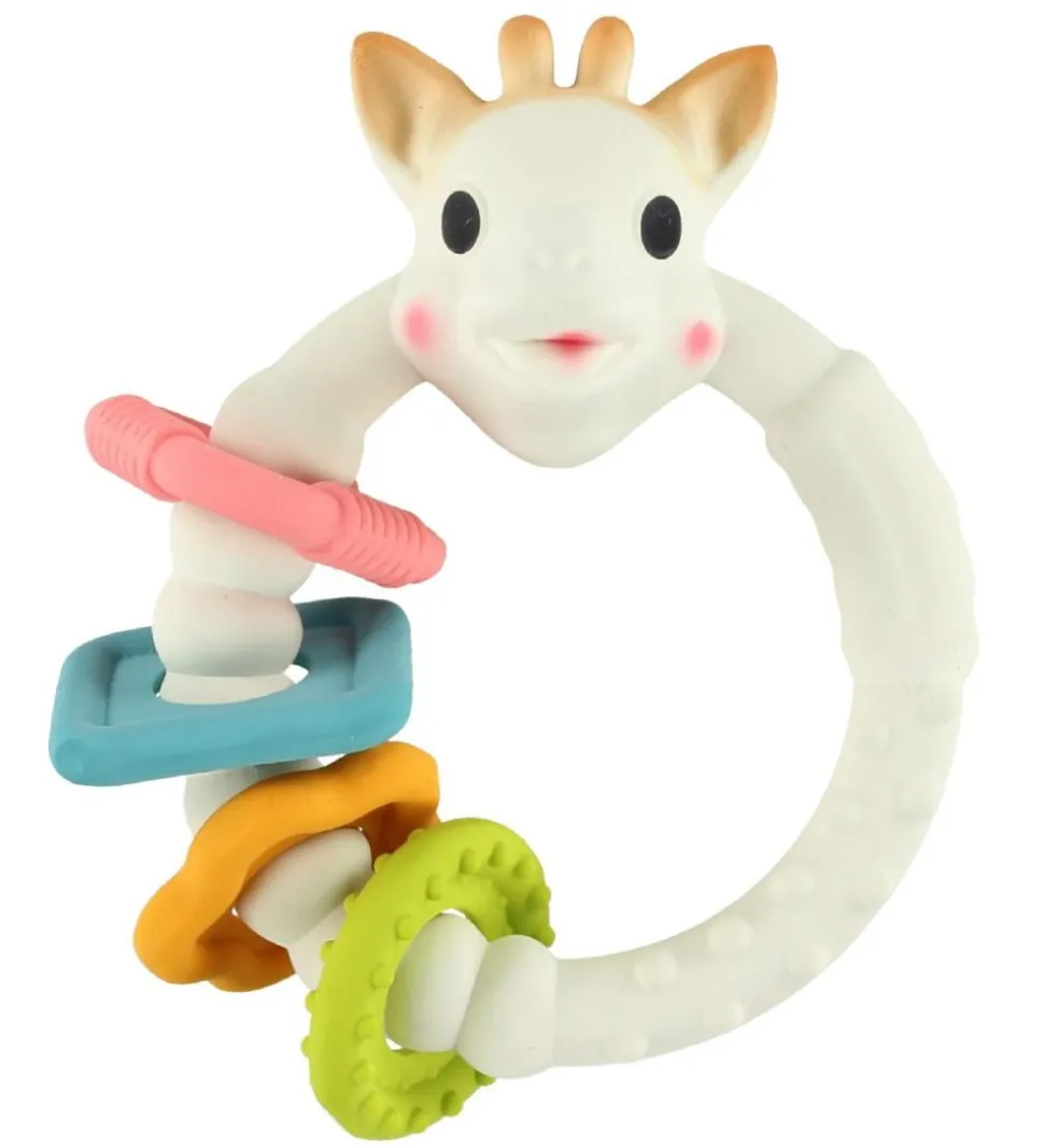 Sophie la Giraf bideringen er helt fri for BPA og ftalater, så ringen er helt sikker at bruge og gumle i.