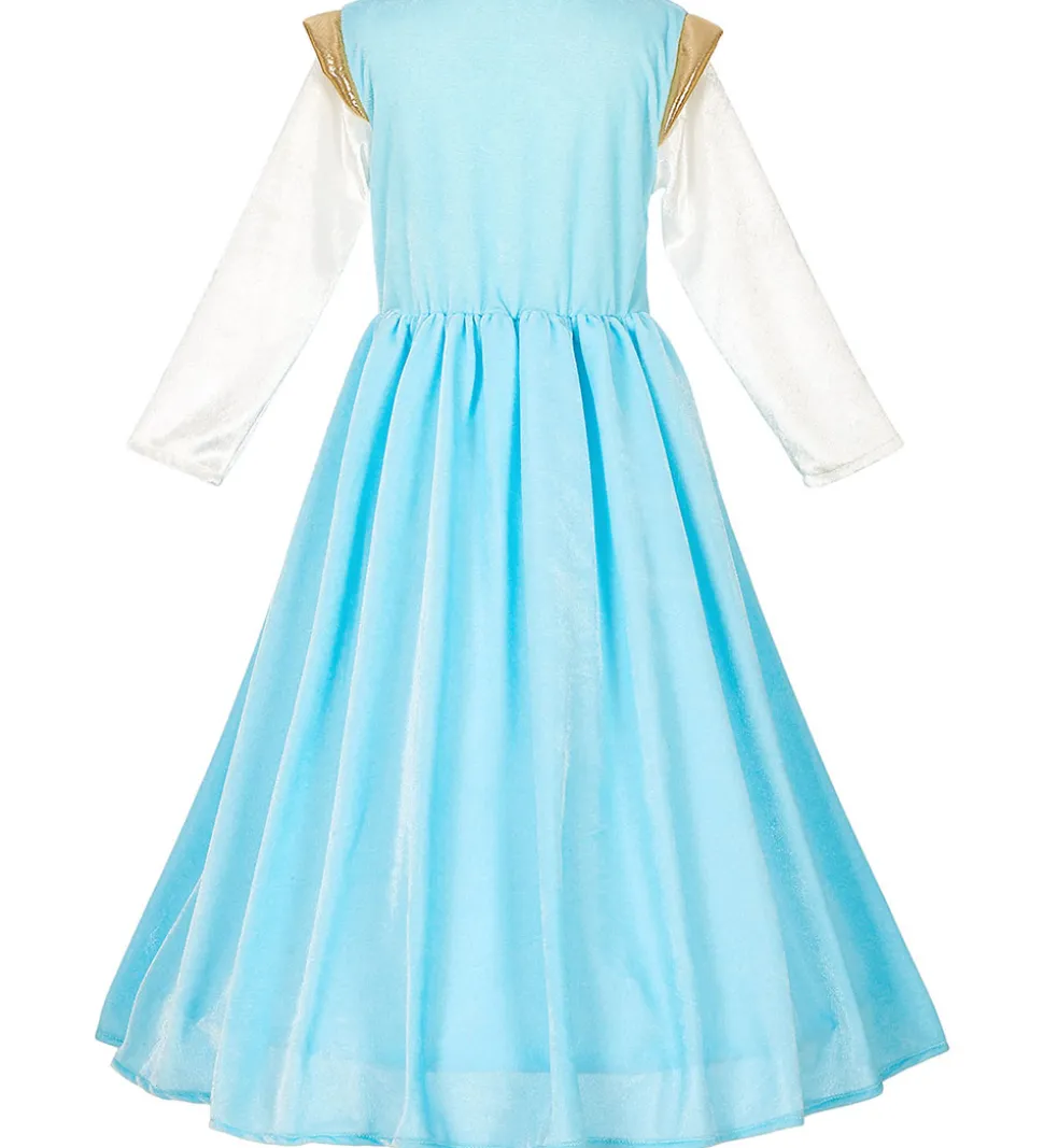 Souza udklædningen er i hvid og lyseblå med skinnende pailletter samt guldkanter og detaljer, der giver et overdådigt præg.
