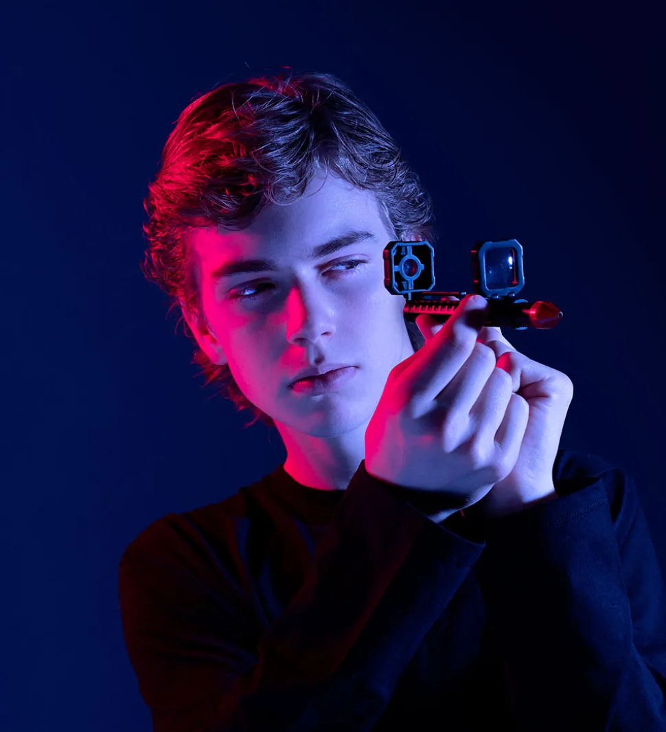 Fedt SpyX legetøj i en sort og rød farvekombination.