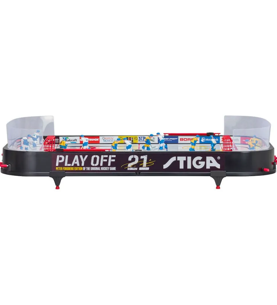 Praktisk Stiga ishockey bordspil i fine farver med svenske og finske ishockeyspillere.