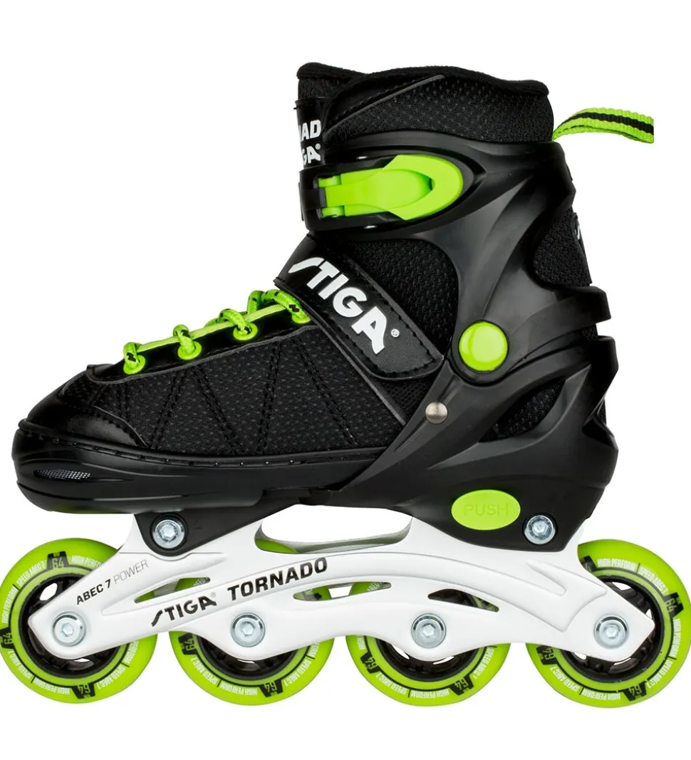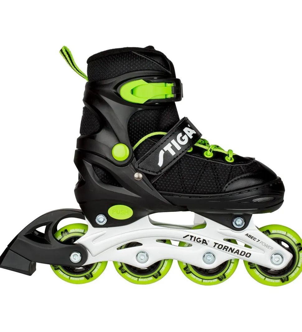 Stiga rulleskøjterne er en inliners-model, og er perfekte til nybegyndere. Skaftet er dels af blødt mesh og dels af en fast skal, så rulleskøjterne er både bløde og stabile på samme tid. Ved anklerne er der en høj ankelstøtte, som giver god stabilitet. Stiga rulleskøjterne lukkes med en plastspænde, en velcrorem samt snørebånd, så de er nemme at få af og på og at justere.