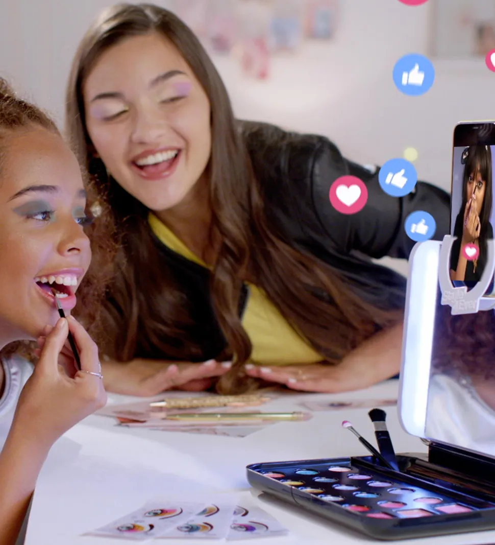 Style 4 Ever mini makeup etuiet er perfekt til det kreative barn. Her for man et professionelt makeup etui med 4 makeup tutorials, som kan klistres på spejlet. Der medfølger en aftagelig mobilholder, så man kan se sine ynglings tutorials eller filme sig selv skabe sin helt egen stil. Med klistermærkerne kan man selv dekorere etuiet så den passer til sin egen stil.