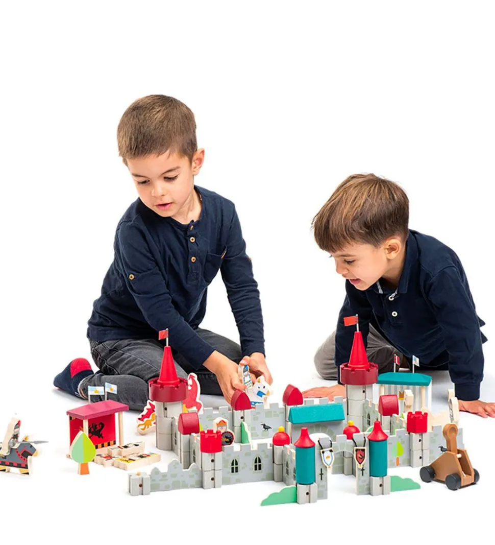 Tender Leaf trælegetøjet består af 100 dele til at bygge en stor ridderborg med 12 riddere, 2 heste samt 1 drage. Trælegetøjet byder på mange timers underholdende leg, og det er med til at stimulere og udvikle barnets fantasi, finmotorik, sprog og kommunikation.