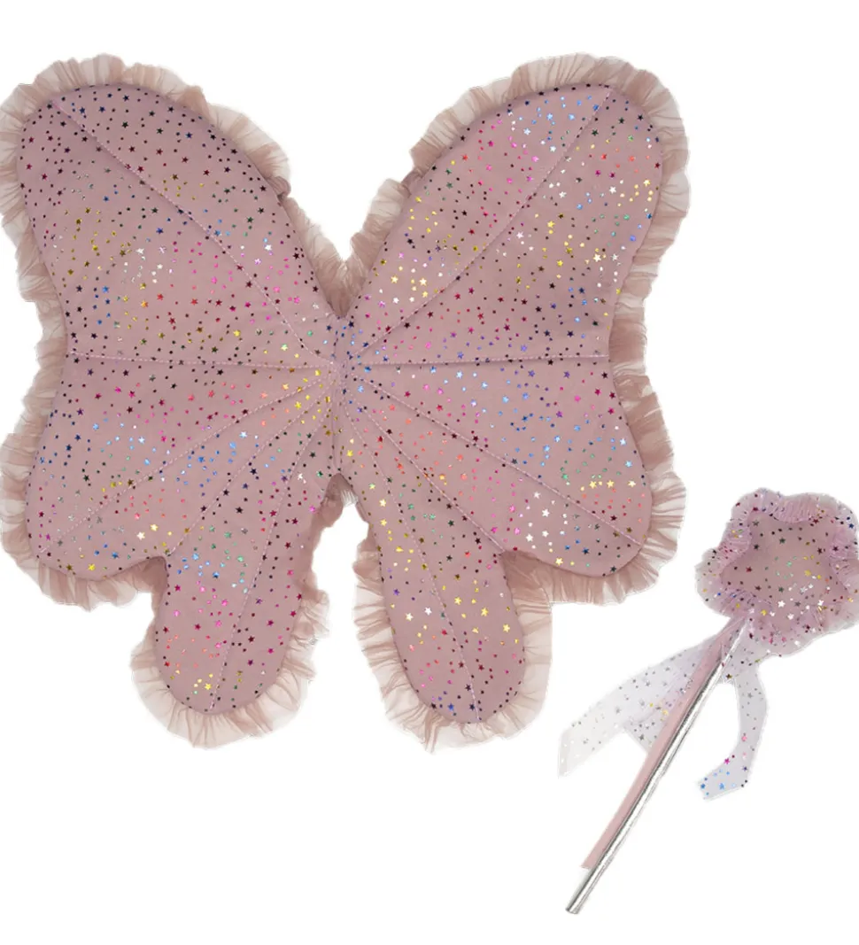 That’s Mine udklædningen rummer fevinger og en tryllestav med klokke og har elastiske stropper, så den er nem at få på.