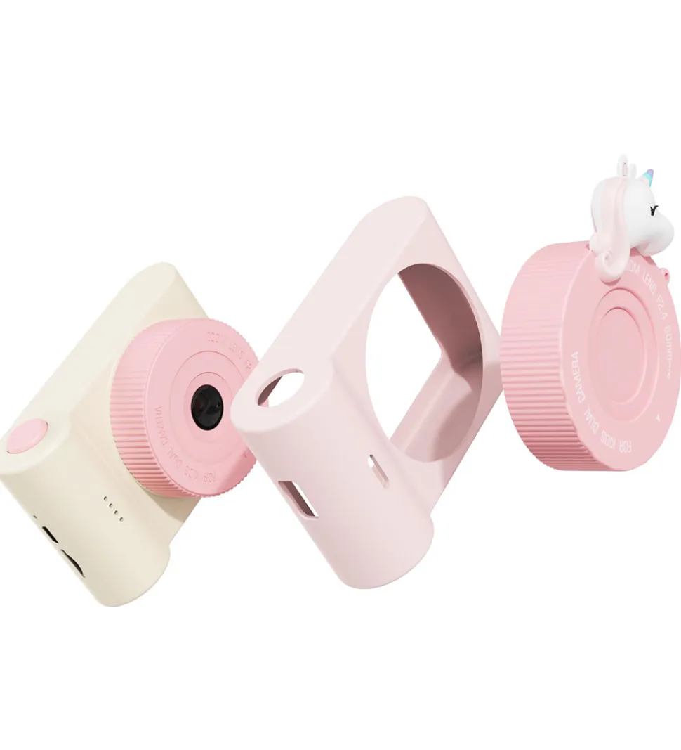 Sjovt The Zoofamily kamera i et rosa enhjørningedesign fra Urban Zoo-serien. Der medfølger et klistermærke-ark, så kameraet kan dekoreres i en personlig stil.
