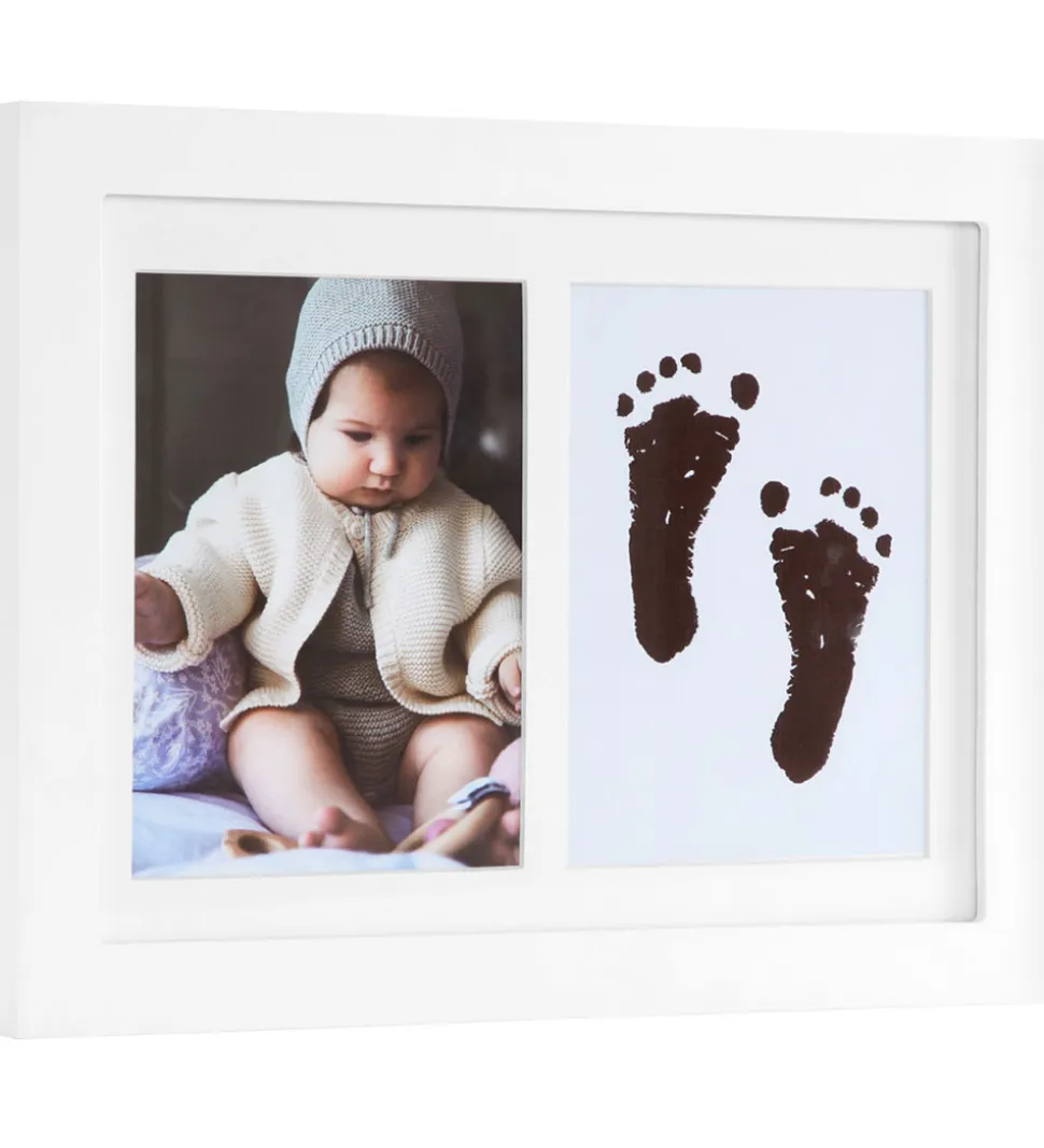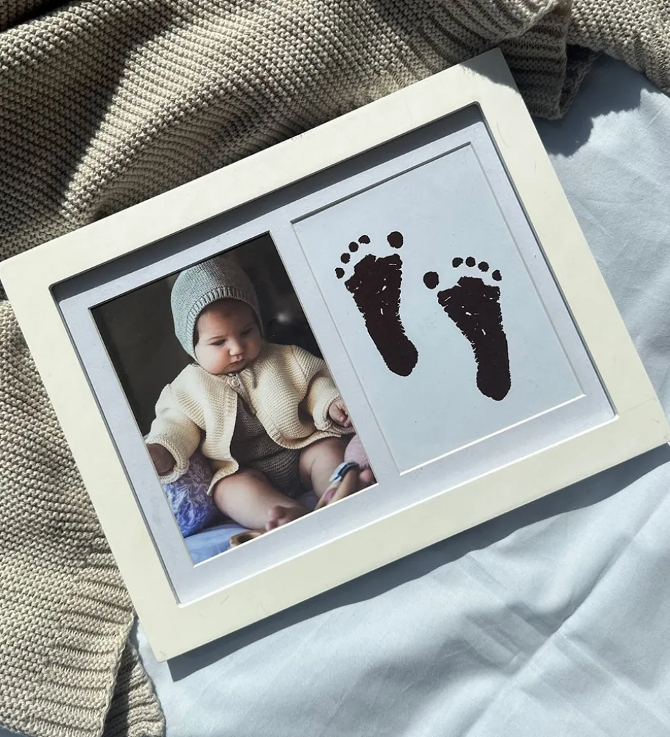 Vanilla Copenhagen sættet er lavet så du kan forevige disse minder af din baby. I rammen er der plads til både hånd og fodaftryk i et felt samt et billede af din baby.
