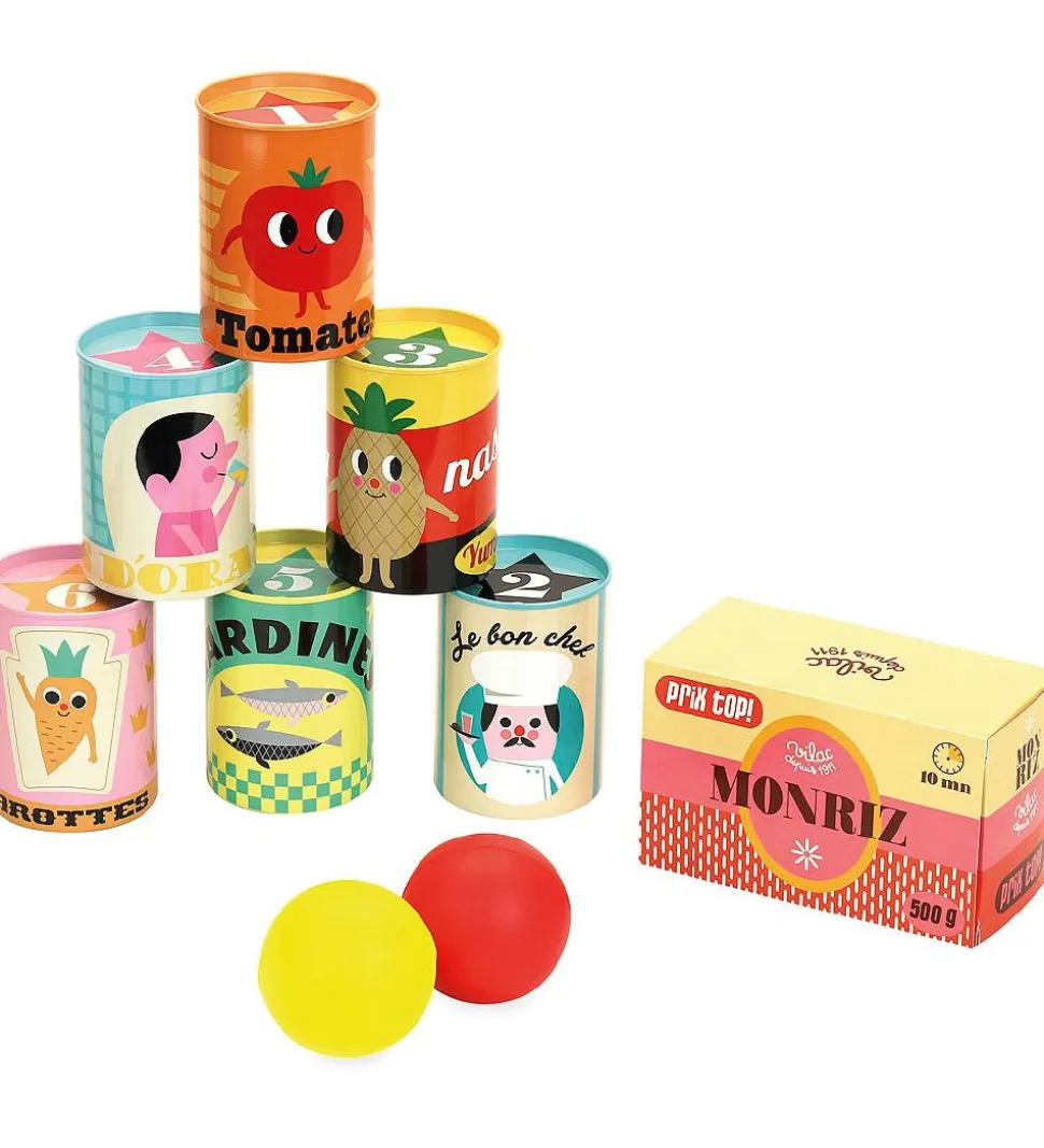 Vilac dåsespillet består af 6 dåser og to bolde. Det gælder om at stable et tårn af dåser, hvorefter man har to skud til at vælte flest dåser. Det er det sjoveste spil for både børn og voksne.