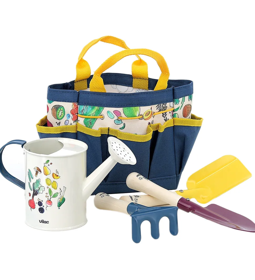 Vilac tasken med haveredskaber er det perfekte udstyr til en lille havemedhjælper. Nu kan barnet rigtig komme med ud i haven og hjælpe til. Haveredskaberne har træhåndtag, som passer til en lille barnehånd og et metalhoved. Haveredskaberne udvikler barnets motorik og følesans, og barnet får kendskab til naturen.