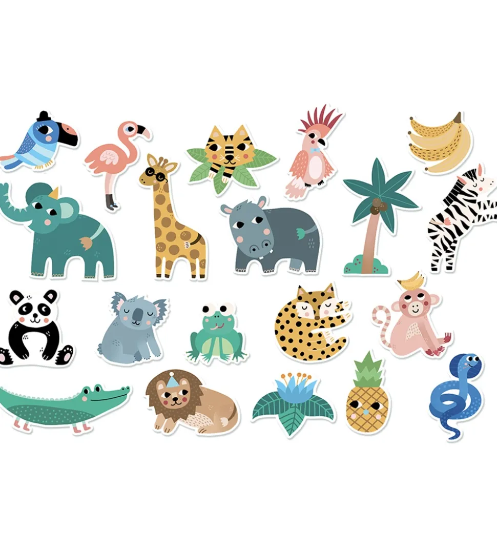 Sjove Vilac magneter lavet i træ med forskellige, farverige motiver under temaet jungel.