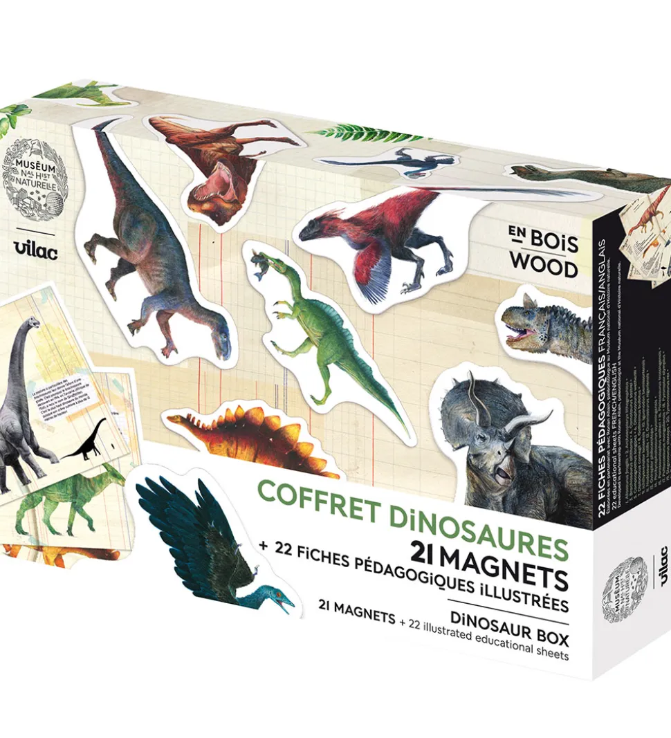 Vilac magnetlegetøjet indeholder 21 magneter og 22 illustrerede læringsark hvilket gør læringen af dinosaurer spændende.