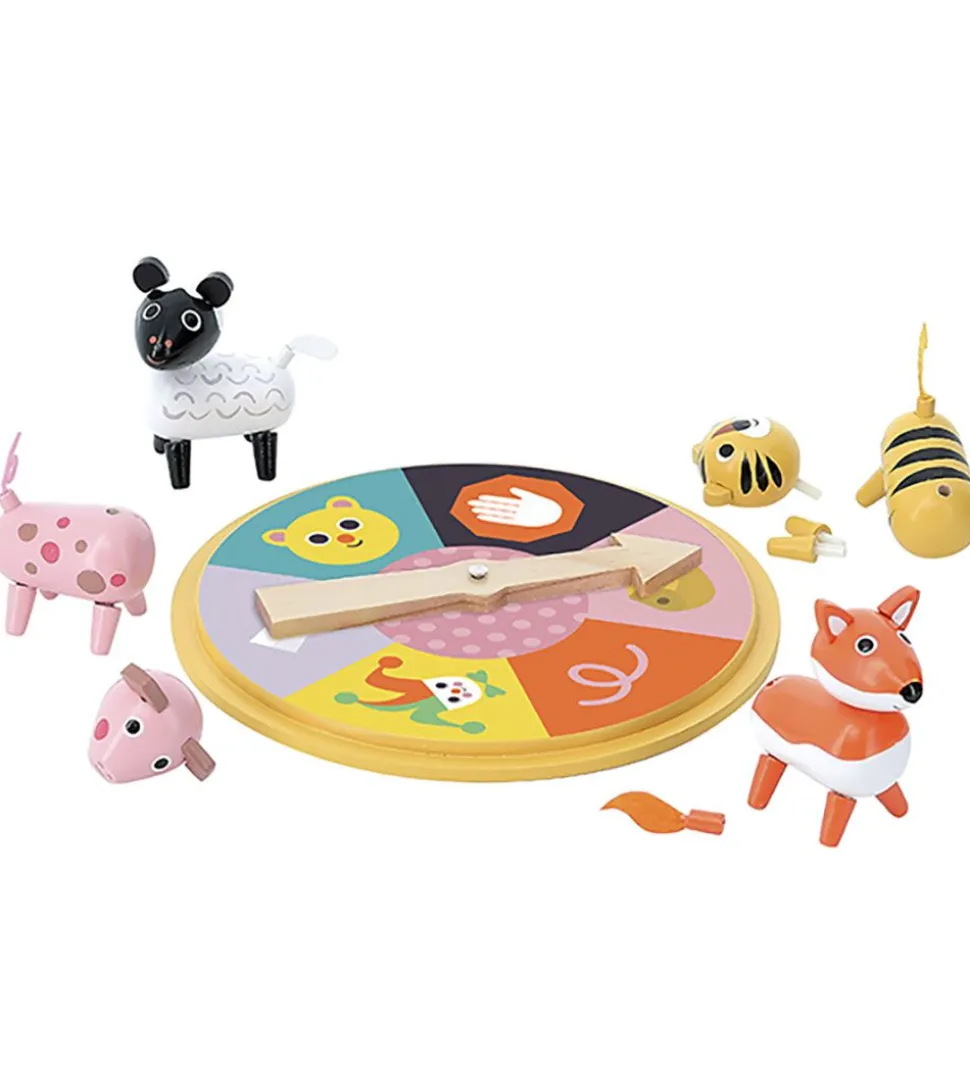 Vilac spillet består af 4 dyr, som kan skilles ad, så der er 4 ben, en krop, en hale og et hoved. Der medfølger en fin plade, som viser alle kropsdele samt en joker og en hånd. Man vælger først et dyr, og så gælder det om at få samlet sit dyr først udfra hvad pilen lander på. Jokeren betyder at du selv må vælge kropsdelen, hvor hånden betyder at du bliver sprunget over i denne runde.