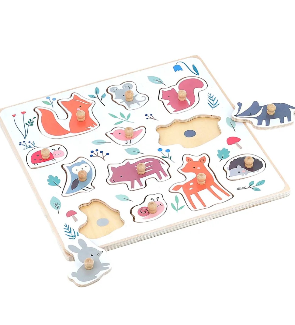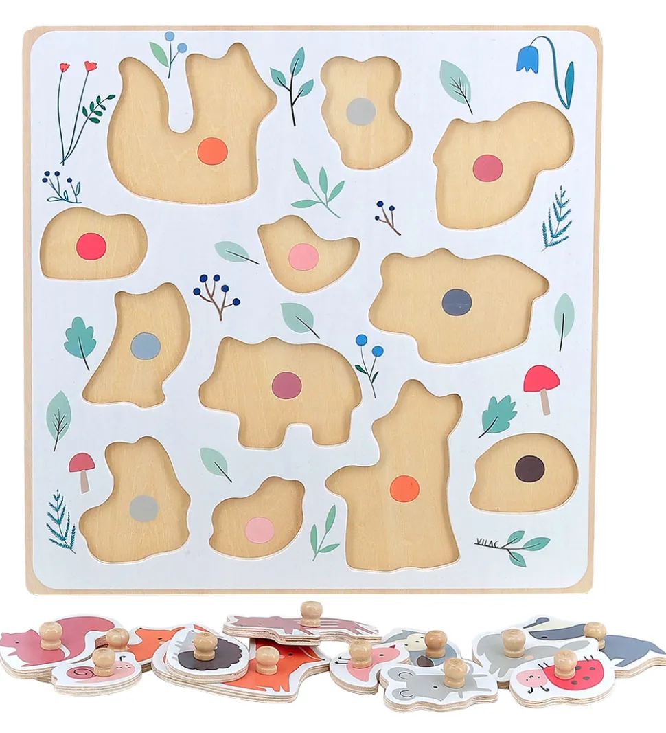 Sjovt Vilac puslespil lavet i træ med forskellige søde dyr med fine farver.