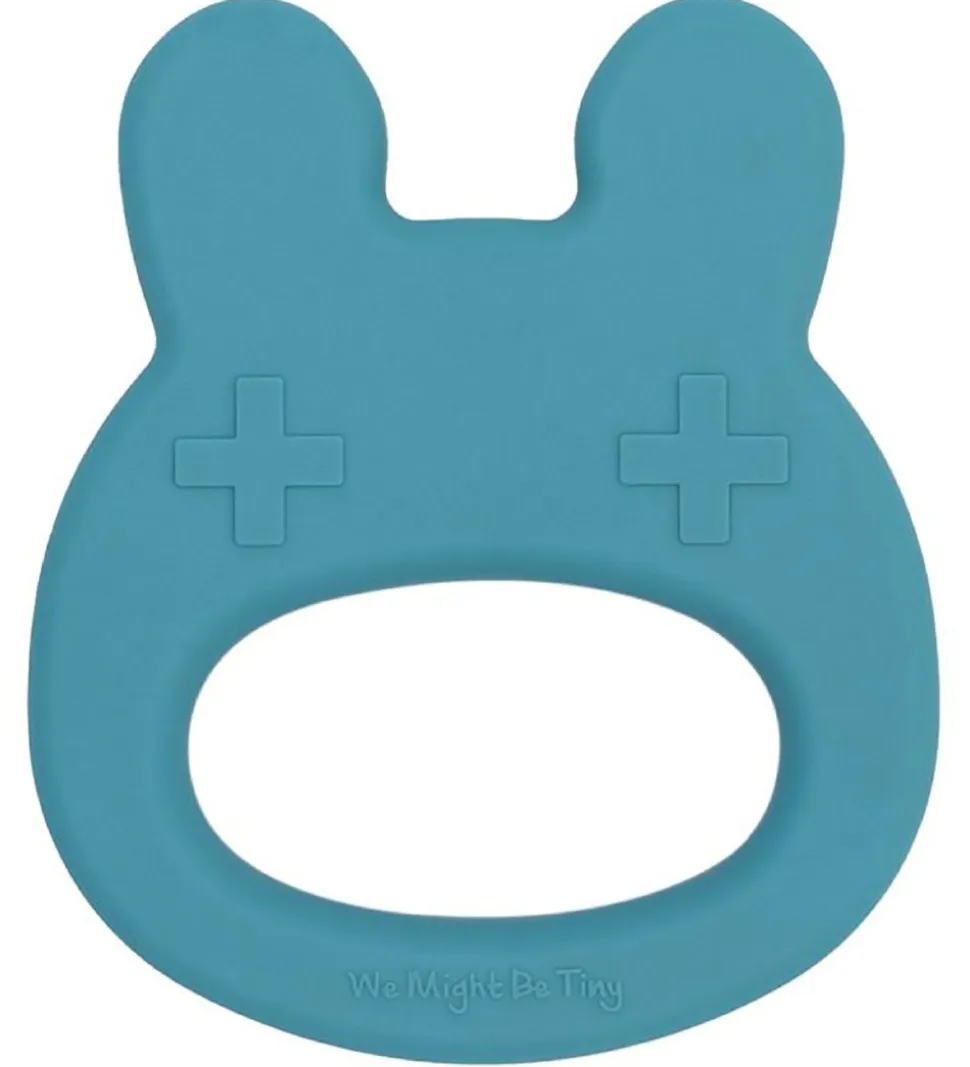 Flot We Might Be Tiny bidering i petroleumsblå silikone med form som et sødt kaninhoved me krydser som øjne.