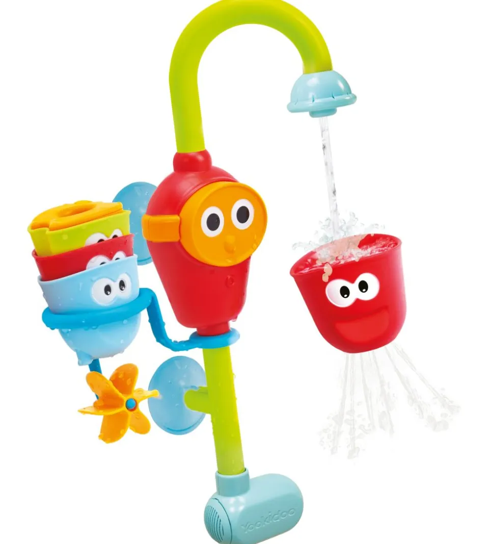 Yookidoo badelegetøjet vil med sikkerhed gøre tiden i badet sjovt. Vandpumpen sættes fast med sugekopper på badekarret eller væggen, med den nederste del forbliver i vandet. Herefter kan barnet pumpe vandet ud af pumpens tud. De små kopper har forskellige vandeffekter, som kan undersøges i timevis. Kopperne kan stables på mange forskellige måder, det er kun fantasien der sætter grænser.